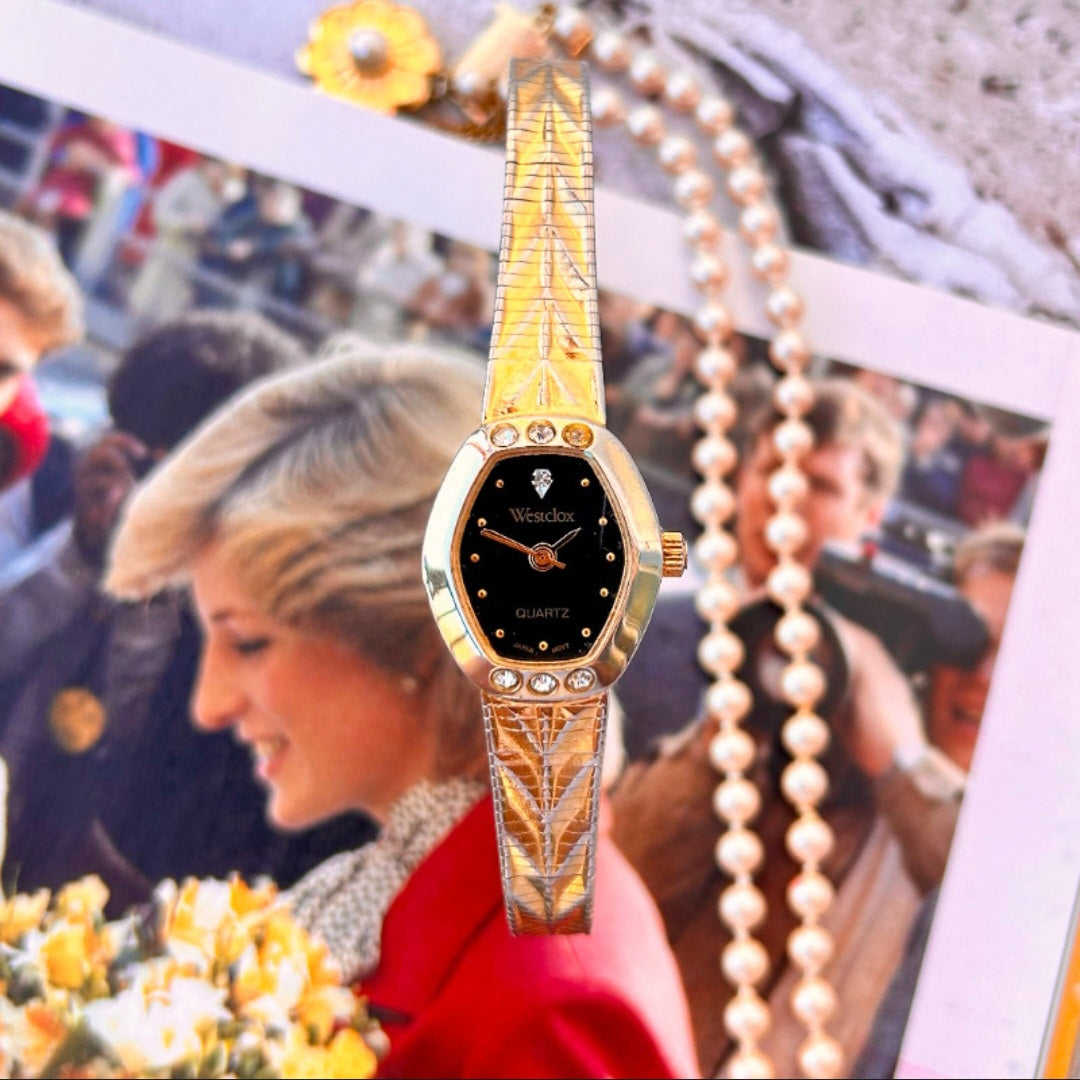 We invite you to travel back in time with this charming watch from the American brand Westclox, produced in Japan in the early 1990s This quartz watch captivates with its beauty, shimmering gracefully in different lighting conditions.